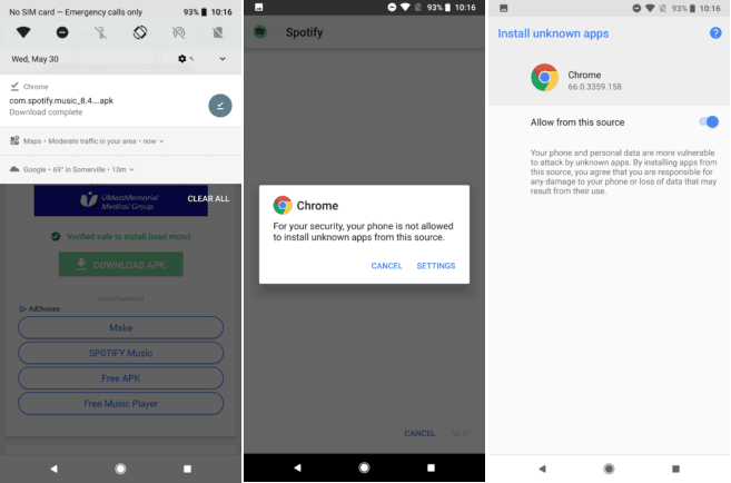 در APK Mirror برنامه ای که لازم دارید را جستجو کنید و پس از آن در نتایج جستجو نسخه مورد نظر خودتان را پیدا کنید. برخی از برنامه های ممکن است نسخه های متفاوتی با معماری های گوناگون داشته باشند. بنابراین نیاز است که کمی تحقیق کنید تا متوجه شوید به چه نسخه ای نیاز دارد. البته بیشتر گوشی های امروز arm64 هستند. اگر بخواهید از منبعی به جز گوگل پلی برنامه نصب کنید نیاز است که اجازه دسترسی و نصب برنامه را به گوشی بدهید. این دسترسی در نسخه های اندرویدی کمی متفاوت است. در اندروید 8.0 اوریو با فعال کردن گزینه Allow from this source این امکان فراهم می شود. (در نسخه های قدیمی تر نیاز است که از منوی Settings به قسمت Security رفته و گزینه Unknown sources را فعال کنید.)