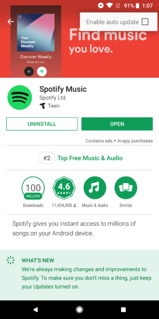 پس از آنکه نسخه مورد نظر برنامه را نصب کردید، به هدف خود رسیده اید. با این حال شما می توانید نسخه های جدیدتر برنامه را بر روی آن نصب کنید. اما اگر چنانچه نمی خواهید نسخه جدیدتر نصب شود، به روزرسانی خودکار را غیر فعال کنید. برای این کار کافیست برنامه مورد نظر را در گوگل پلی پیدا کنید و با انتخاب منوی سه نقطه در بالای سمت راست، تیک گزینه Enable auto update را بردارید.
