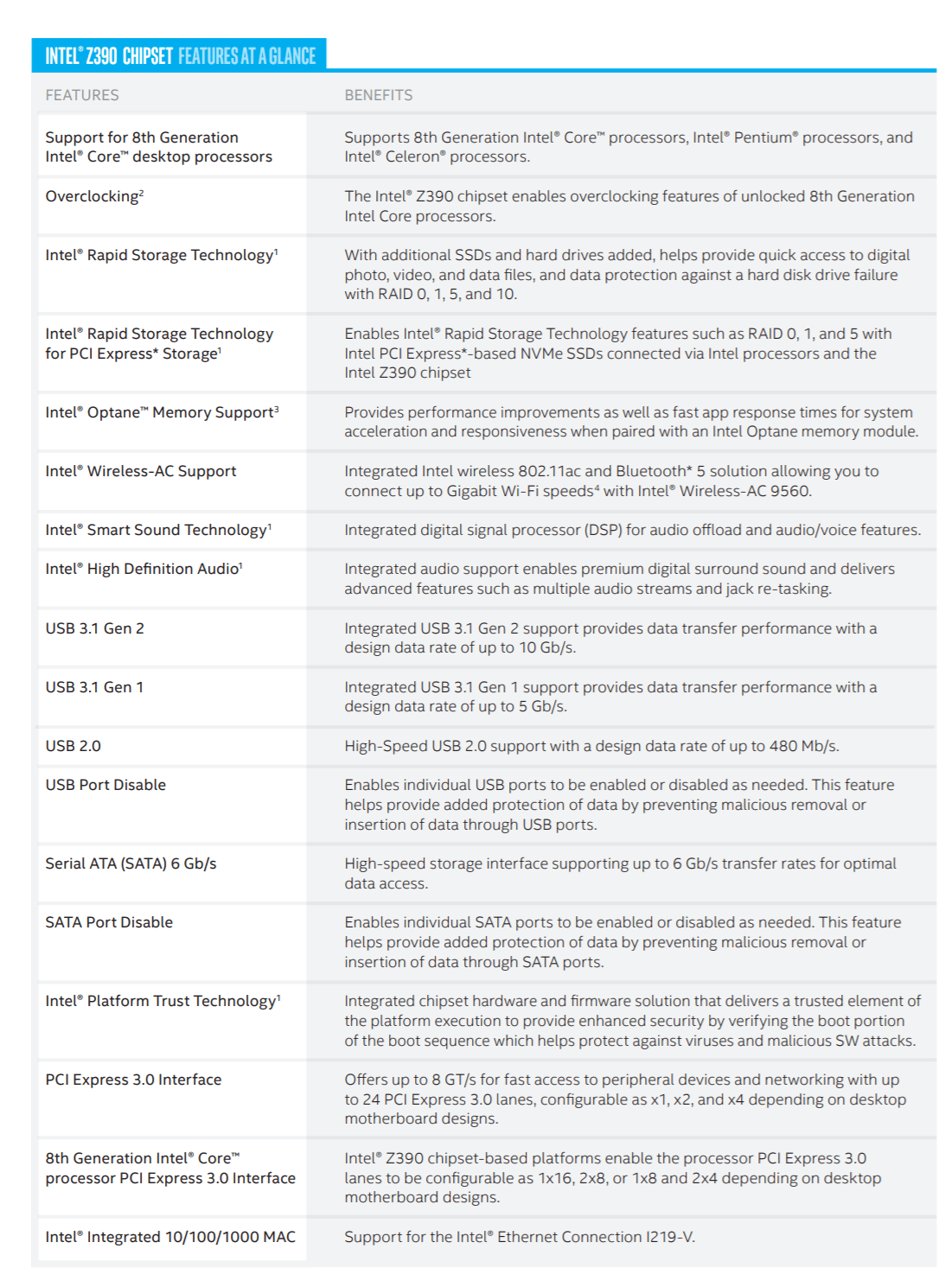 تراشه اینتل Z390 قطعه ای است سرنوشت ساز برای یک پلتفرم سطح بالا و یا با امکاناتی جالب توجه که در 2 ماه گذشته خبرساز شده بود. اینک اینتل به طور رسمی اسلایدی را در وب سایت خود منتشر کرده است که حاوی اطلاعات مربوط به چیپست Z390 خواهد بود. این چیپست برای CPU های نسل هشتم این شرکت (کافی لیک) ارائه خواهد شد؛ در این اسلاید خبری از CPU های 8 هسته ای نبوده و شاید یک سکوت خبری با سیاست است.