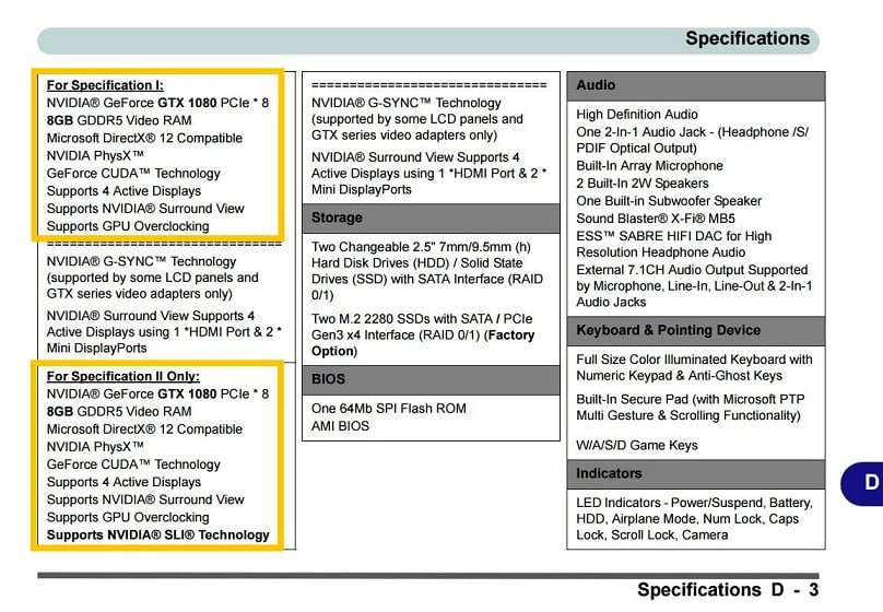CLEVO P870DM3-G– GeForce GTX 1080 8GB SLI