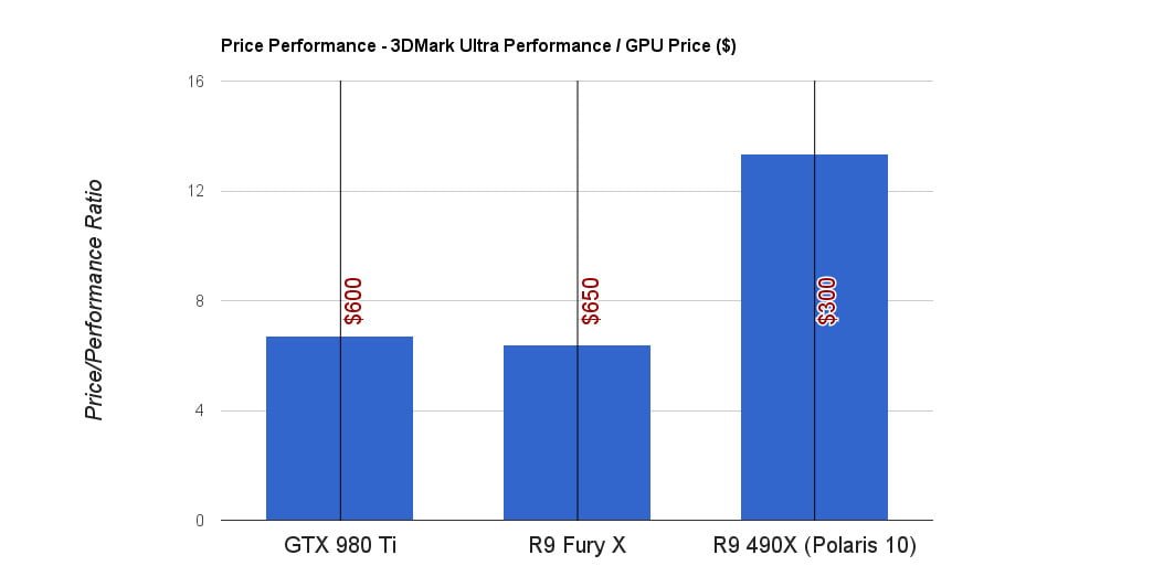 دوستای عزیز دقت کنید که کنار عکس نوشته price/performance ratio که ممکنه بعضی ها رو به اشتباه بندازه. قدرت این کارت در حدود همون 980Ti و FuryX خواهد بود با نصف قیمت. نه دوبرابر قدرت اونا