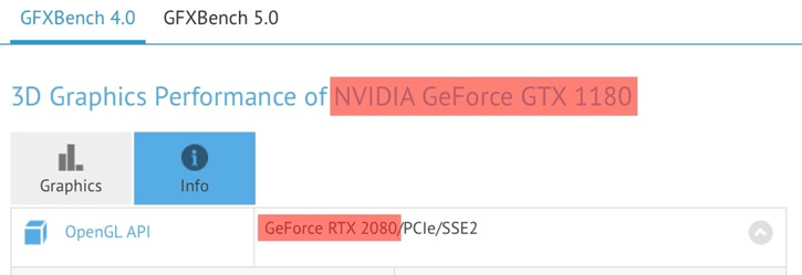 یکی دیگر از نشانه هایی که این احتمال را قوت می بخشد، وجود نام کارت گرافیک GeForce GTX 1180 در پایگاه داده GFXBench 4.0 است که البته شباهت های تکنیکی و فنی مشخصات آن به GeForce RTX 2080، در تائید این فرضیه که آنها هم از معماری Turing برخوردار هستند، موثر است. GeForce GTX 1180 هم مانند GeForce RTX 2080 دارای 2944 هسته سایه زن است. آیا انویدیا مدل های ارزان قیمت سری GTX 1100 را معرفی خواهد کرد؟ ظاهرا بله!