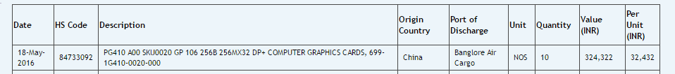 همانطور که می دانید،انویدیا سیلیکون GP106 را به منظور پر کردن جای خالی کارت گرافیک های میان رده-میان رده رو به پایین در نظر گرفت.به عنوان مثال می توان به کارت گرافیک های GTX950 و GTX960 اشاره کرد.ساعاتی پیش اما تصاویری از پایگاه داده Zauba منتشر شد که طی آن نه فقط اطلاعات احتمالی این کارت گرافیک پیگیری گشت،بلکه احتمال ورود آن در پاییز امسال نیز قوت گرفت.