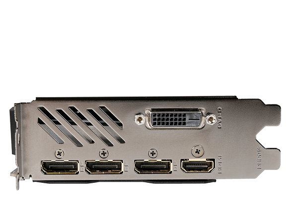 در بخش پورت ها مجموعه کاملی شامل یک خروجی DVI Dual Link، یک پورت HDMI نسخه 2.0b و سه پورت Display Port نسخه 1.3 در نظر گرفته شده است. به این صورت با بهره گیری از پورت های Display Port قادر به استفاده از حداکثر وضوح تصویر 4320×7860 پیکسل خواهید بود. تصاویر خود را می توانید روی حداکثر 4 مانیتور به نمایش در آورید تا کاربرانی که به بهره گیری از چند صفحه نمایش علاقه مند هستند، از این ویژگی استفاده کنند. نسخه جدید خنک کننده Windforce 2X گیگابایت به دو عدد فن و دو لوله انتقال حرارت با سطح تماس مستقیم مجهز است که در کنار این موارد، هیت سینک دو تکه آلومینیومی نیز به کنترل حرارت بهتر کمک می کند.