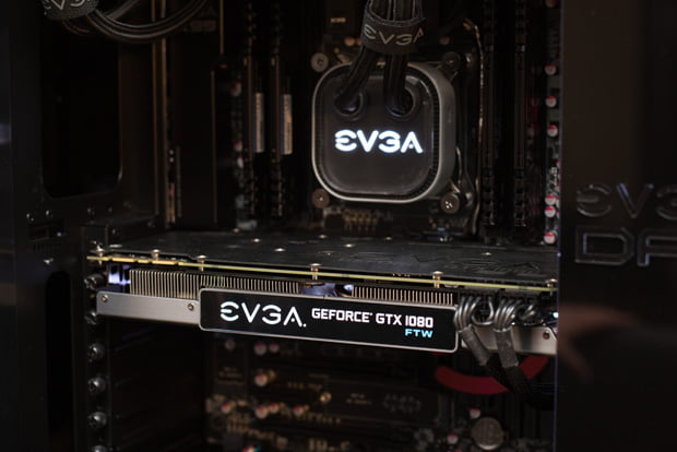 کمپانی EVGA نیز تا کنون 3 کارت گرافیک جدید خود را معرفی کرده است.اما برترین مدل هایی که دل کاربران را برده است،GTX 1080 FTW و EVGA GTX 1080 HYBRID است. GTX 1080 FTWدارای یک PCB سفارشی،هیت سینک پر تراکم و بسیار با کیفیت،دو اتصال 8 پین تغذیه و مدار فاز با آرایش 10+2 است.این کارت گرافیک نیز به دو عدد بایوس مجهز شده است.