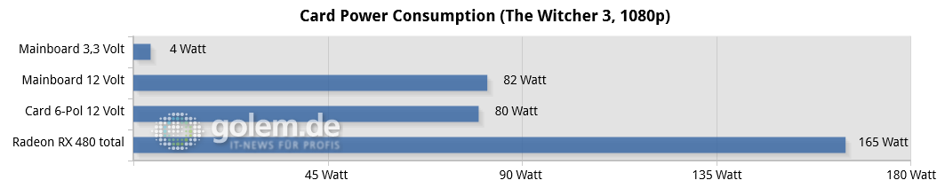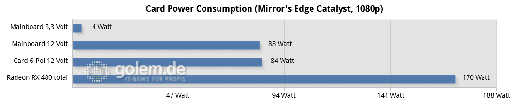 اندازه گیری های انجام شده نشان می دهد که این کارت گرافیک توانی بیش از 75 وات را از اسلات PCI درخواست می کند.سقف استفاده از اسلات PCI تنها 75 وات است.این آزمون ها توسط مادربرد های Z170 و Z97 انجام شده و نتایج تقریبا یکسان بوده است.این آزمون ها نشان می دهد که این کارت گرافیک بین 78~83 وات از توان مصرفی خود را از اسلات PCI درخواست می کند که متاسفانه بیشتر از استاندارد 75 وات این اسلات و حتی یک کانکتور 6 پین است.