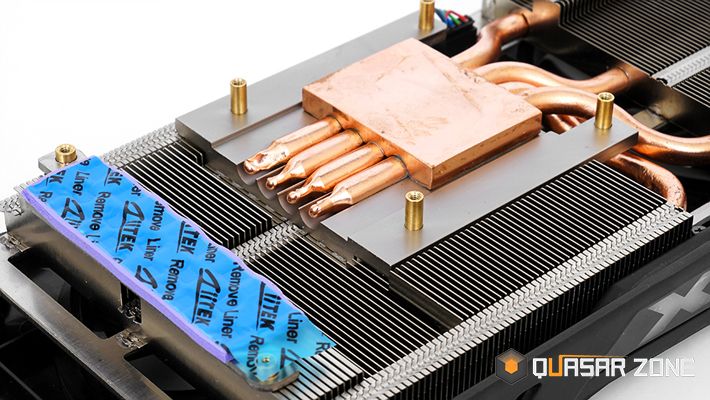 قسمت مسی قرار گرفته بر روی GPU،دارای 4 لوله انتقال حرارت است.هیت سینک نیز فراتر از انتظار ظاهر گشته و به طور خاصی بخش بنده شده است.عدم اتصال کامل بخش های هیت سینک،تهویه ای بهبود یافته را به ارمغان می آورد.