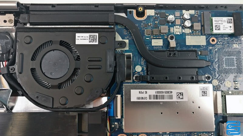 در نهایت به بخش تهویه می رسیم. این بخش نیز پیچیگی خاصی نداشته و یک هیت پایپ با برچسب پوششی فلزی، دمای پردازنده را به هیت سینک و در نهایت یک فن منتقل می کند.