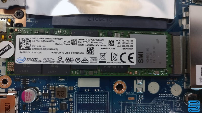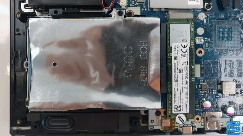 نمونه مورد نظر ما دارای یک سالید M.2 PCIe NVMe SSD با ظرفیت 256 گیگابایت است که در صورت نیاز می توانید از جایگاه 2.5 اینچی نیز برای ارتقاء استفاده نمائید.