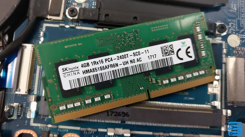 جالب است بدانید که Lenovo Yoga 520 (Flex 5) تنها به یک اسلات حافظه رم مجهز شده است که می تواند میزبان یک ماژول با حداکثر ظرفیت 16 گیگابایت با فرکانس DDR4-2400Mhz باشد. در نسخه مورد نظر ما، یک ماژول 4 گیگابایتی نصب شده است. این تراشه تولید شرکت کره ای SK-Hynix است.