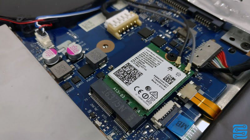 یک کارت Wi-Fi مدل Intel 8265NGW در وسط مادربرد جای گرفته است. سیم های آنت آن به زیر سامانه تهویه و سپس در اطراف مانیتور کشیده شده است. آنتن های Wi-Fi همواره در نوت بوک ها در اطراف مانیتور تنیده می شوند تا بهترین آنتن دهی را ایجاد نمایند.