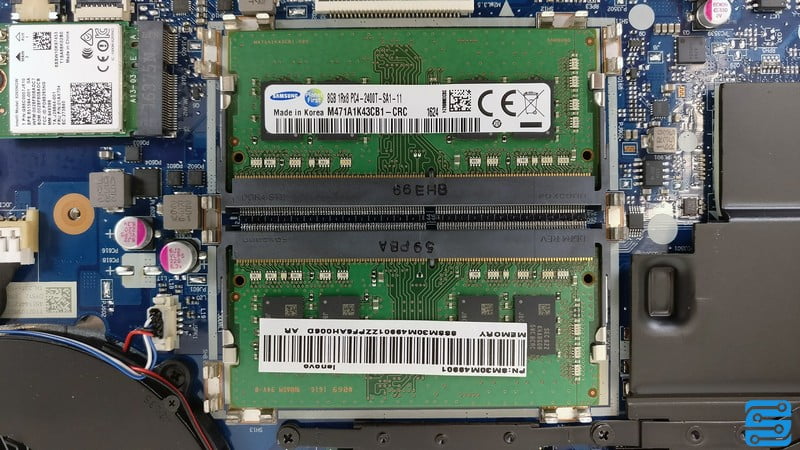بخشی مربع مانند در مادربرد دیده می شود که در زیر آن ماژول های رم قرار گرفته است. این مادربرد دارای دو اسلات رم است و دو ماژول رم سامسونگ در ظرفیت هر یک 8 گیگابایت و مجموع 16 گیگابایت رم در فرکانس موثر 2400 مگاهرتز در آن به کار رفته است.