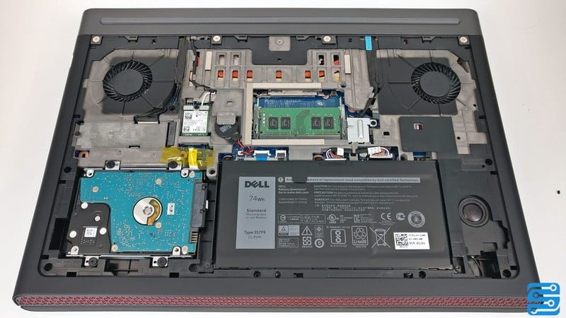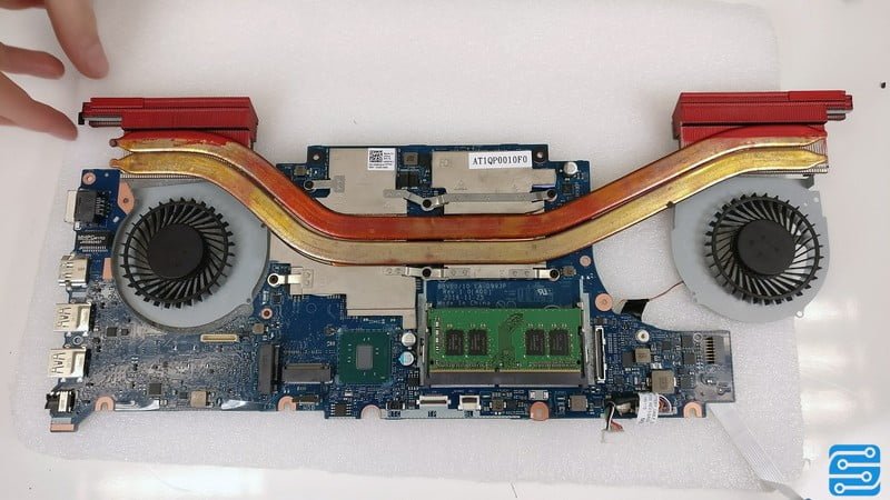همچنین دو هیت سینک آلومینیومی نیز در انتهای هیت پایپ ها نصب شده است. دل اگزوزها را رو به عقب طراحی کرده است که گرما را از استراحت گاه دست به عقب هدایت می کنند. این خنک کننده برای این سخت افزارها نسبتا مناسب به نظر می رسد. این محصول از یک پردازنده Intel Core i7-7700HQ و یک کارت گرافیک NVIDIA GeForce GTX 1050Ti بهره می برد.