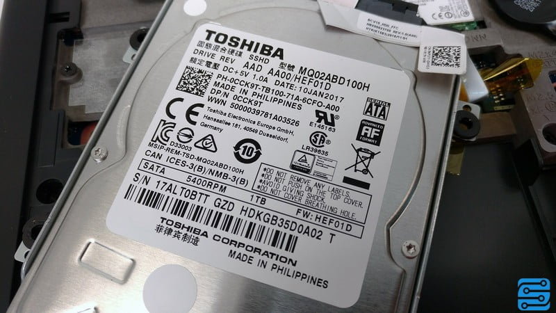 این نوت بوک در پیکربندی های متفاوتی عرضه می گردد؛ اما در برخی موارد مشترکات ثابتی مانند پردازنده و کارت گرافیک در بین آنها وجود دارد. کانفیگ مورد نظر ما در بخش ذخیره سازی دارای یک هارد دیسک 1 ترابایتی توشیبا است که دارای دور موتور 5400 دور در دقیقه است.