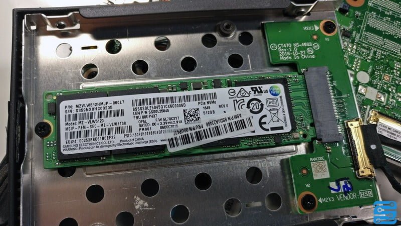 همانطور که گفته شد، در بخش ذخیره سازی تنها از حافظه های SSD M.2 استفاده شده و خبری از جایگاه 2.5 اینچ یا هارد دیسک وجود ندارد. در این کانفیگ شاهد استفاده از یک سالید مدل Samsung PM961 512GB M.2 PCIe NVMe SSD هستیم. شما در این مدل محدود به درایوهای M.2 هستید.