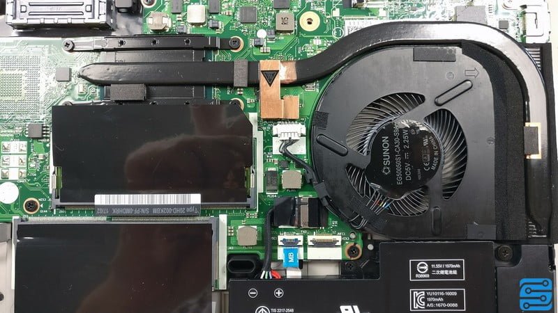 سامانه خنک کننده بسیار ساده و بدون مورد قابل توجهی است. یک هیت پایپ مسی از پردازنده به هیت سینک جلوی فن کشیده شده است. اگزوز این خنک کننده به سمت پهلو است. از آنجایی که در این لپ تاپ از کارت گرافیک خبری نیست، پردازنده گرافیکی Intel HD Graphics 620 این وظیفه را بر عهده دارد.