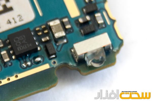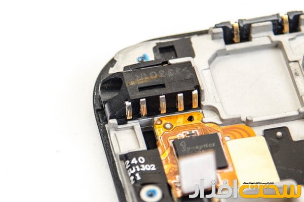 بسیاری از اتصالات گوشی بین قطعات مختلف از جمله این اتصال 3.5 میلیمتری هدفون و همچنین کلید های تنظیم حجم صدا به کمک پایه های اینچنینی به بورد اصلی متصل میشوند.