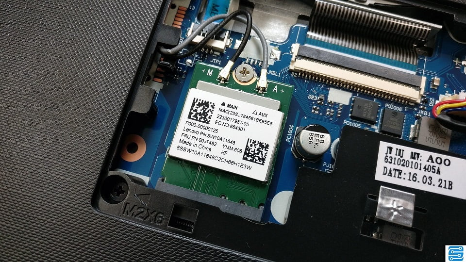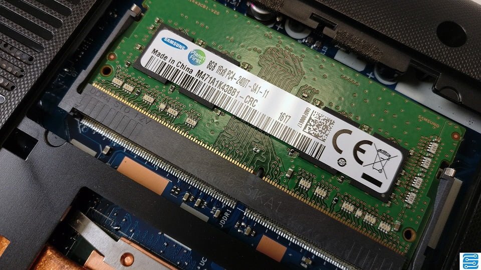 باز کردن درب دیگر، برای دسترسی به حافظه رم و ماژول Wi-Fi لازم است. در این قسمت یک اسلات 8 گیگابایتی از حافظه DDR4 با فرکانس 2133 مگاهرتز نصب گشته است. این ماژول تولید برند سامسونگ است. افزون بر آن در اکثر پیکربندی ها 4 گیگابایت حافظه با فرکانس 2133 مگاهرتز نیز به برد لحیم شده است. در نتیجه 12 گیگابایت حافظه را حداکثر پیش رو خواهید داشت. ماژول مورد نظر در مدل SW10A11648 است.