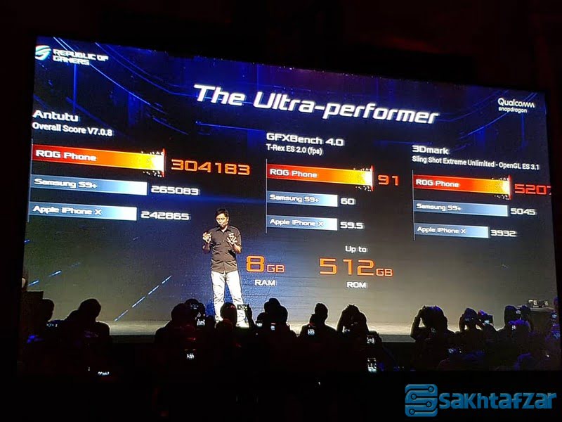 ایسوس در این کنفرانس به نخستین گوشی گیمینگ “ROG Phone” به همراه خنک کننده اختصاصی اشاره کرد. سپس برخی از بنچمارکهای این گوشی برای حضار نمایش داده شد. ظاهرا ROG Phone یک کنسول گیمینگ کوچک و قابل حمل است!