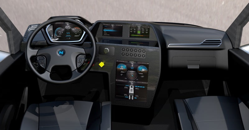 برسیم به مشخصاتی که برای این کامیون ادعا شده: این کمپانی که نام کامیون خود را Nikola one گذاشته، استفاده از باطری های 320 کیلووات ساعت برای ذخیره سازی، و یک پیل سوختی هیدروژنی-الکترونیکی که 800 ولت برق تولید میکند. ( پیل سوختی در واقع از هر نوع سوخت، برق تولید میکند )، این کامیون میتواند تا 1200 مایل معادل 1930 کیلومتر را با شارژ کامل مخزن هیدروژن بپیماید، و مصرف سوختی حدود 11.7 لیتر در هر 100 کیلومتر داشته باشد. این میزان مصرف و رنج پیمایش برای یک کامیون فوق العاده است. این را هم تصور بکنید” بدون هیچ گونه آلودگی”