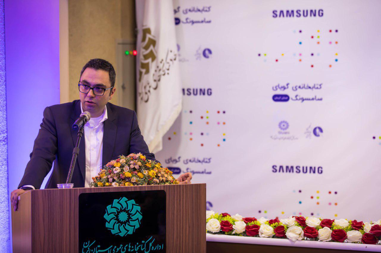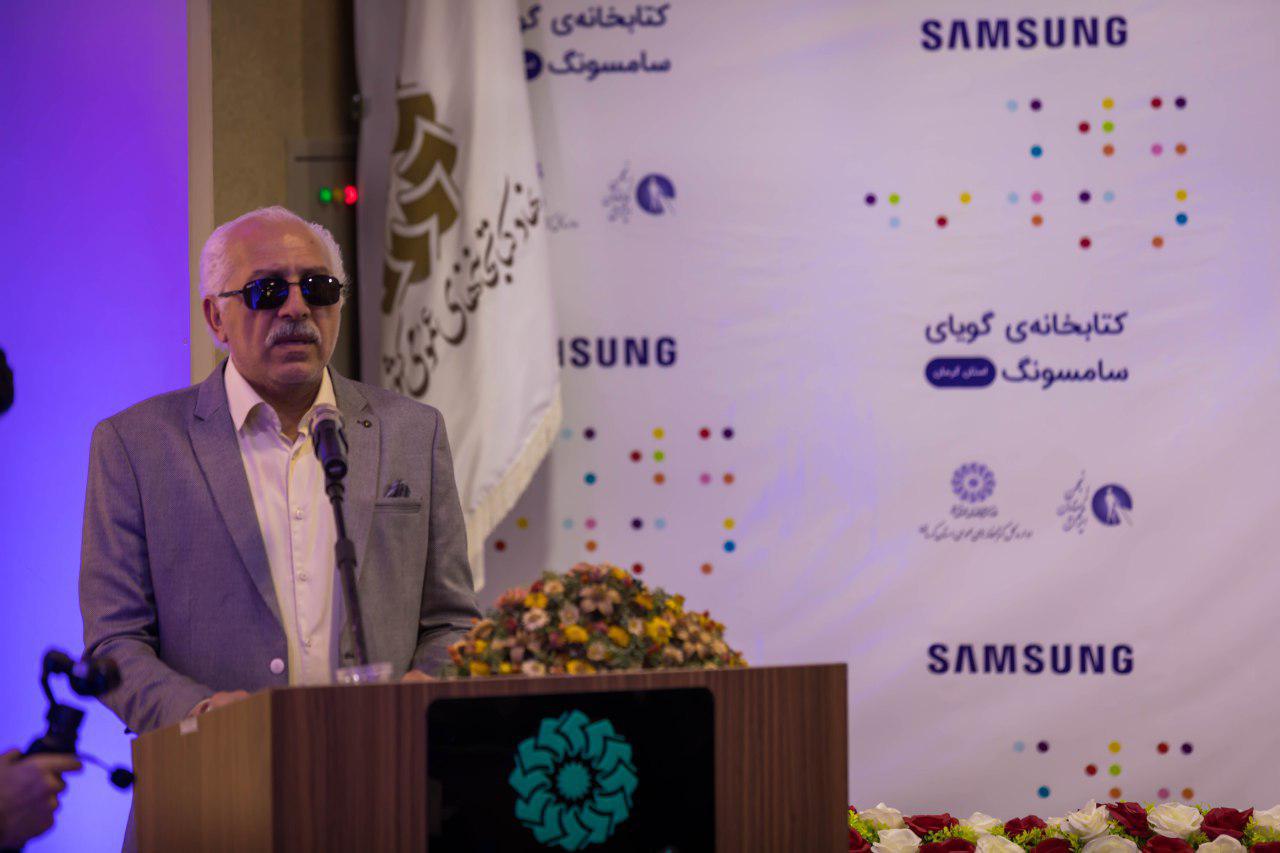 در ادامه این مراسم منصور شادکام، قائم مقام انجمن نابینایان ایران، با تشکر از حمایت‌های سامسونگ در راه‌اندازی کتابخانه‌های گویا گفت: « اولین شعبه از این کتابخانه‌ها در سال ۹۱ و در شهر زنجان افتتاح شد. هدف اولیه ما و شرکت سامسونگ راه‌اندازی کتابخانه‌های گویا در شهرهای کم برخورداری بود که تعداد نابینای بیشتری را دارد. پس از آن هم کارگروهی به منظور افزایش کتاب‌های صوتی ویژه نابینایان تشکیل شد.»