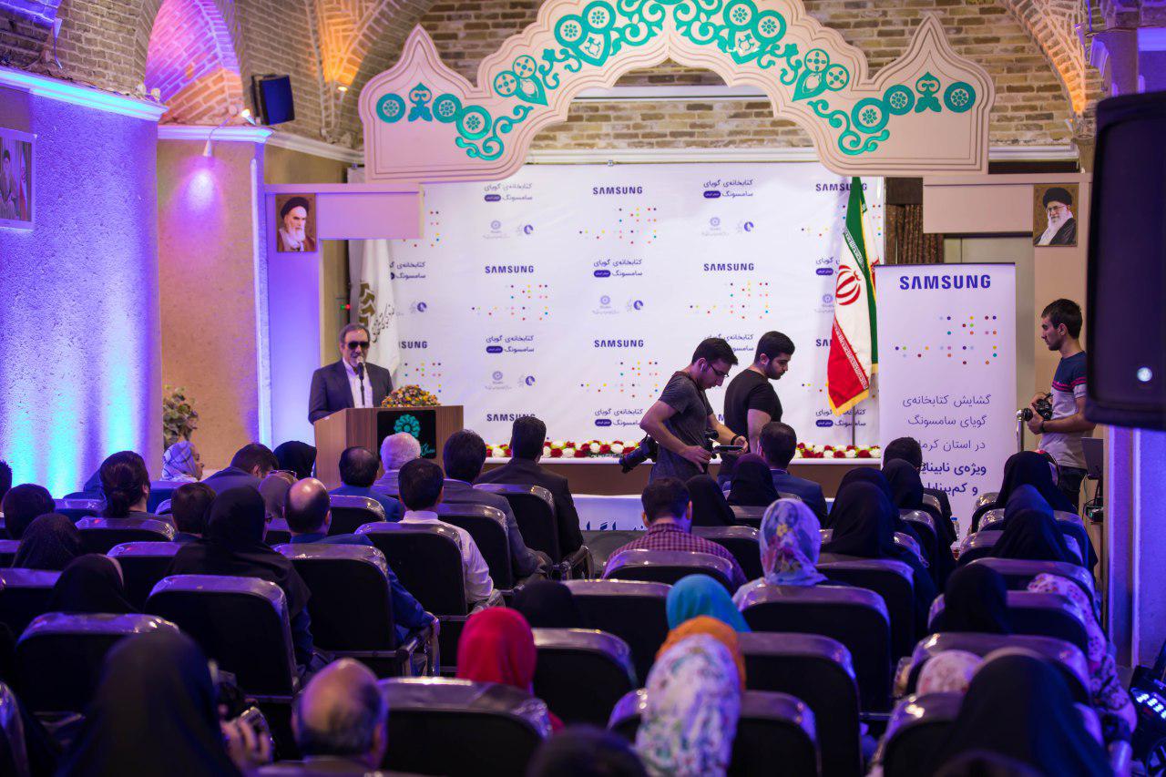مراسم افتتاح کتابخانه گویای کرمان با حضور مدیران بخش مسئولیت‌های اجتماعی سامسونگ، نمایندگان انجمن نابینایان کشور، در کنار مدیران کل بهزیستی، امور اجتماعی و فرهنگی استان در باغ کتابخانه ملی کرمان برگزار شد.