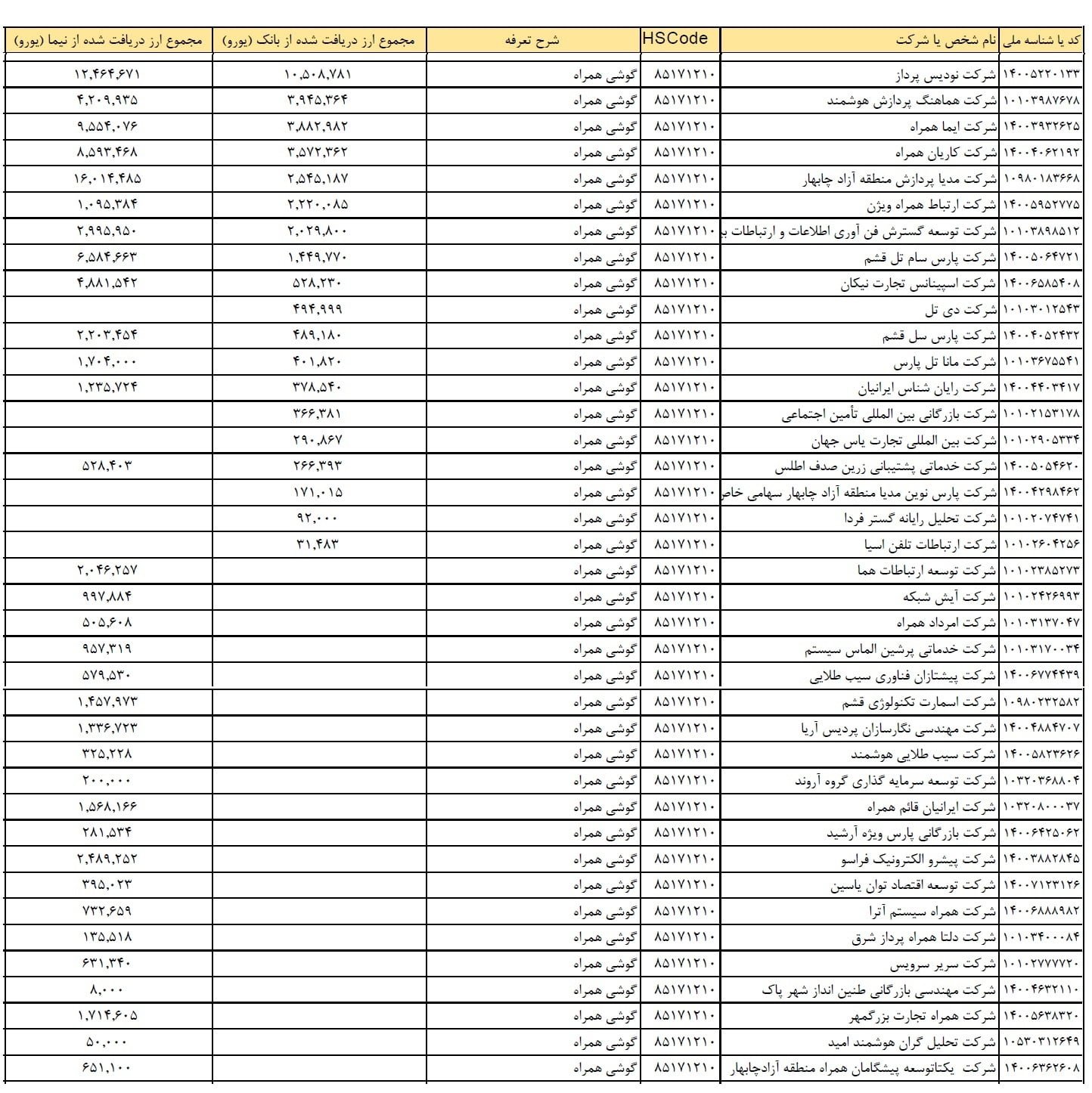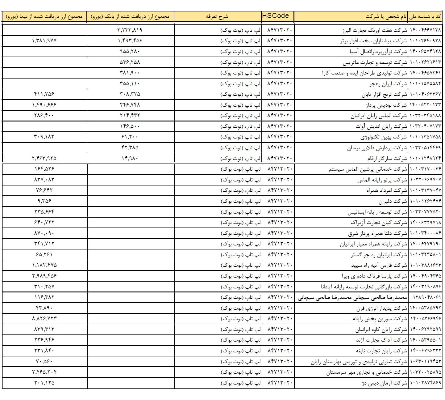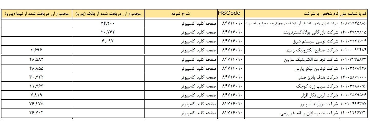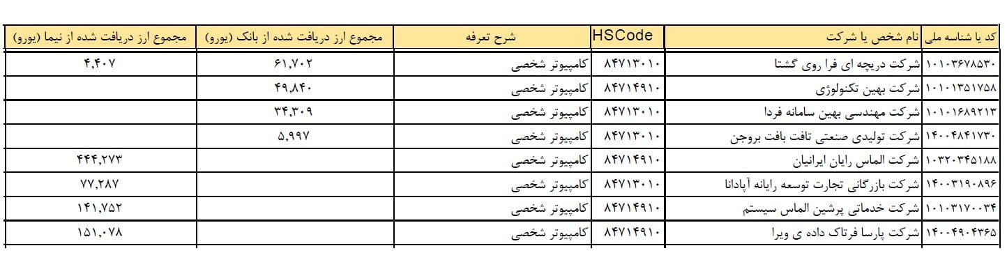 نکته قابل توجه درباره این فهرست آن است که بر خلاف فهرست منتشر شده توسط وزارت ارتباطات، تنها ارز دریافتی شرکت ها مشخص شده و اطلاعاتی درباره واردات نهایی کالاها توسط هر کدام از آنها در اختیار نیست که باید توسط سازمان های دیگر از جمله گمرک منتشر شود. نکته مهم تر آنکه تقریبا همه شرکت های وارد کننده لپ تاپ موجود در این لیست با وجود دریافت ارز دولتی در بهار گذشته اقدام به افزایش قیمت چندصد هزار تومانی کالاهای خود کرده اند که این امر نیازمند ورود سازمان های نظارتی و برخورد با متخلفان است.