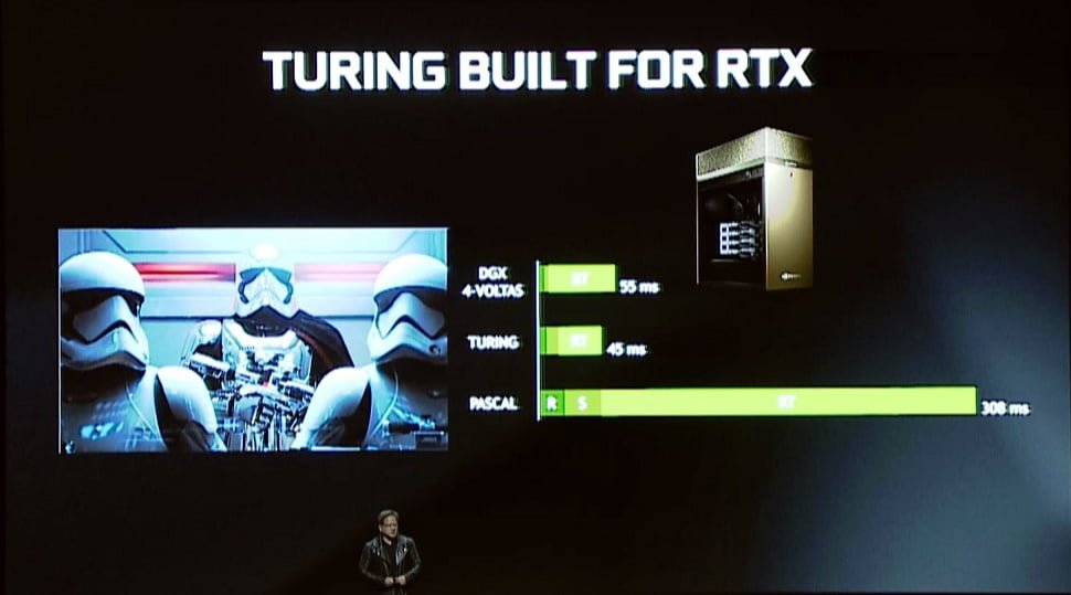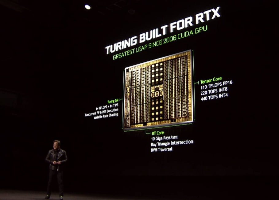 نخستین بخش مهم این کنفرانس به معرفی سیلیکون پرچمدار Turing اختصاص داشت؛ این سیلیکون پس از تراشه NVIDIA V100 دومین تراشه بزرگ انویدیا خواهد بود. سری کارت گرافیک های RTX 2080 تماما از این سیلیکون استفاده خواهند کرد که در برخی مدل ها، از گونه تقلیل یافته استفاده خواهد شد.