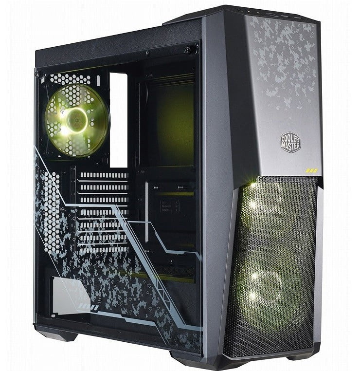 در پنل سمت راست کیس نماد بزرگ TUF حک شده است و نور پیش فرض فن ها، نوعی سبز مایل به نظامی است که البته انتظار رنگ زرد را برای آن داشتیم. در این ادیت جدید، ظاهر کیس تنها با تغییراتی همراه بوده است. اما کیس MasterBox MB500 TUF Gaming Edition تنها مدل بازنشر شده نبوده و این شرکت خنک کننده های Cooler Master TUF Gaming MA410M و MA620P را با طراحی ظاهری جدید نیز راهی بازار می کند.