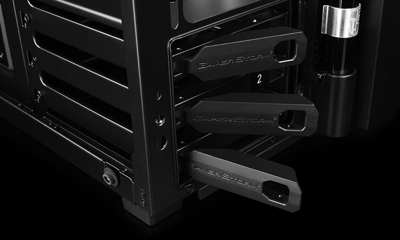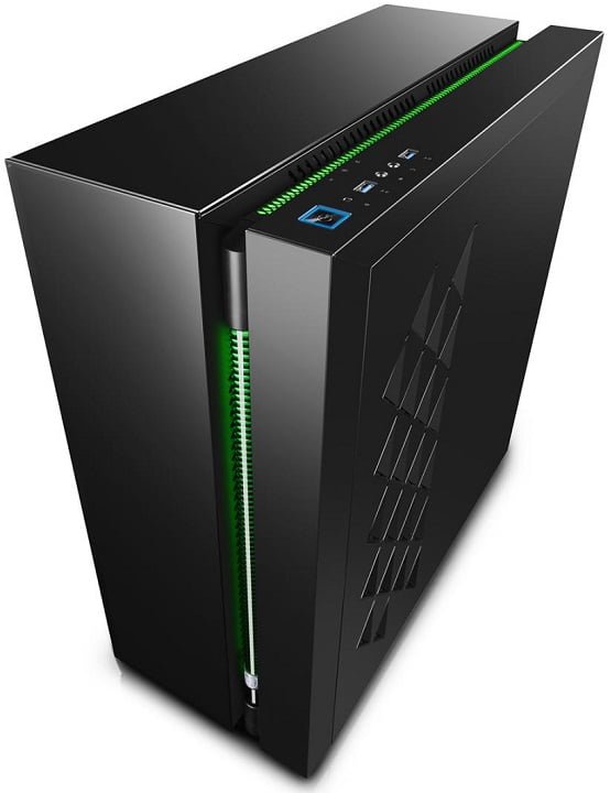 این کیس دارای 4 بخش به منظور نصب خنک کننده های مایع بوده و از همه مهمتر، یک لوله از جلوی کیس عبور می کند که مایع خنک کننده نیز از آن عبور کرده و قابل مشاهده است. یک کابل اتصال PCIe با هدف نصب نصب کارت گرافیک به صورت عمودی نیز برای آن در نظر گرفته شده است. بدین ترتیب کارت گرافیک شما نمای کامل خود را به نمایش می گذارد.
