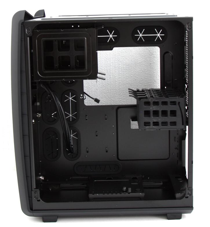 کیس Carbide Air 740 از دو جدار داخلی بهره می برد که قطعات سخت افزاری در قسمت های پنهان و آشکار آن نصب می شوند.در همین ابتدای کار باید بگوییم که کورسیر پشتیبانی از درایوهای 5.25 اینچی را از قابلیت های این کیس حذف کرده و جایگاه آن را با امکانات دیگری پر کرده است.دو محفظه نصب قطعات در پشت یکدیگر قرار گرفته اند.منبع تغذیه (پاور) و درایوهای 2.5 و 3.5 اینچی ذخیره سازی در قسمت پشت نصب شده و مشاهده آنها از درب شیشه ای کیس تقریبا ناممکن است.