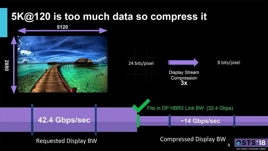 این شرکت در جریان کنفرانس XDC 2018 گفت: برای پخش محتوای 5K در فرکانس 120 هرتز، به پهنایی باندی برابر با 42.4 گیگابیت در ثانیه نیاز است که عملا از اختیار رابط DisplayPort نیز خارج بوده، چرا که این رابط هم دارای حداکثر پهنای باند 32.4 گیگابیت در ثانیه است. در نتیجه اینتل از تکنیک فشرده سازی DSC استفاده می کند که امکان پخش چنین محتوای با درگاه یاد شده ممکن شود. در این صورت پس iGPU های همراه با Ice Lake به حدی قدرتمند خواهند بود که امکان رندر برخی از بازی ها را خواهند داشت.