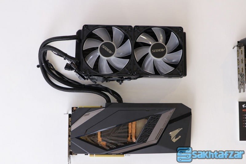نخست کارت گرافیک پرچمدار و حرفه ای AORUS RTX 2080 XTREME WATERFORCE را شاهد هستیم؛ ین کارت گرافیک با شناسه فنی GV-N2080AORUSX W-8GC، از یک خنک کننده مایع برخوردار است که از نوع لوپ بسته یا AIO است. این خنک کننده دارای یک رادیاتور 240 میلی متری است که بر روی رادیاتور و کارت گرافیک، دیودهای LED RGB استفاده شده است.