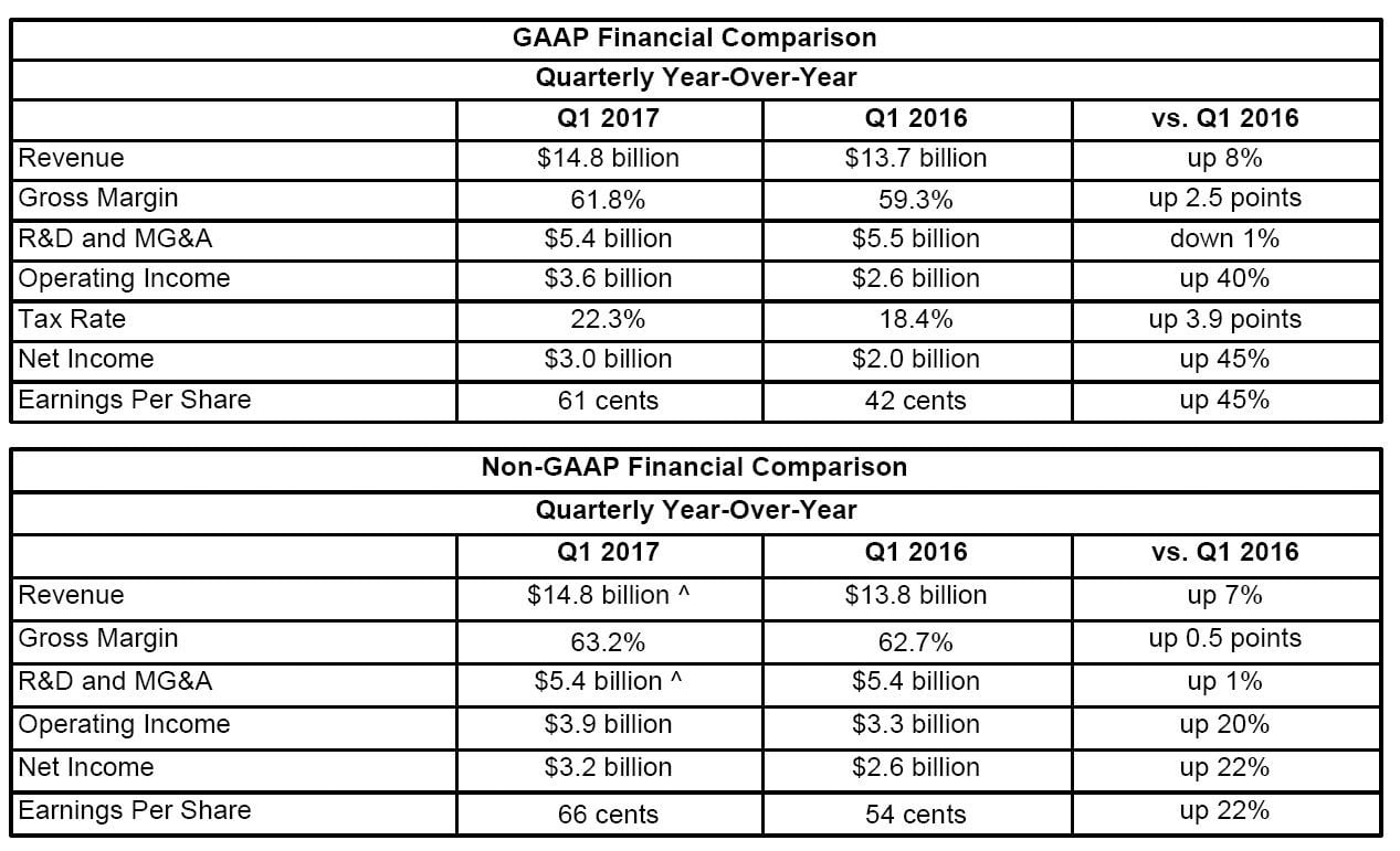 کمپانی اینتل از ابتدای سال 2017 تا کنون به طور جدی و پس از نزدیک به 5 سال، وارد یک رقابت جدی در بخش پردازنده ها شده است. با این وجود گزارش مالی این شرکت حاکی از آن است که رشد مالی بیش از انتظار و چشم انداز خود بوده است. گزارش مالی اینتل که مانند دیگر کمپانی های جهان هر 3 ماه یکبار منتشر می گردد، نشان می دهد که این شرکت از ابتدای سال 2017 تا تاریخ 31 ماه مارس، 14.8 میلیارد دلار درآمد را کسب کرده است. این مقدار به نسبت مدت زمان مشابه در سال گذشته در وضعیت های GAAP و غیر GAAP به ترتیب 8% و 7% افزایش یافته است. درآمد عملیاتی این شرکت 3.6 میلیارد دلار بوده که در باز هم در وضعیت های GAAP و غیر GAAP به ترتیب 40% و 20% افزایش را به نسبت 3 ماهه نخست سال 2016 نشان می دهد. همچنین ارزش سهام اینتل نیز وضعیت روشنی را به خود گرفته است. به دلیل ایجاد طوفان در بازار، برای مدتی کوتاه ارزش سهام این شرکت در یک نقطه باقی مانده و حتی برای مدت کوتاهی رو به کاهش گذاشت؛ با این وجود هم اینک شاهد 61 سنت برای هر سهم در حالت GAAP و 66 سنت در Non-GAAP هستیم که به نسبت مدت زمان مشابه در سال گذشته تا 45% الی 22% افزایش یافته است.