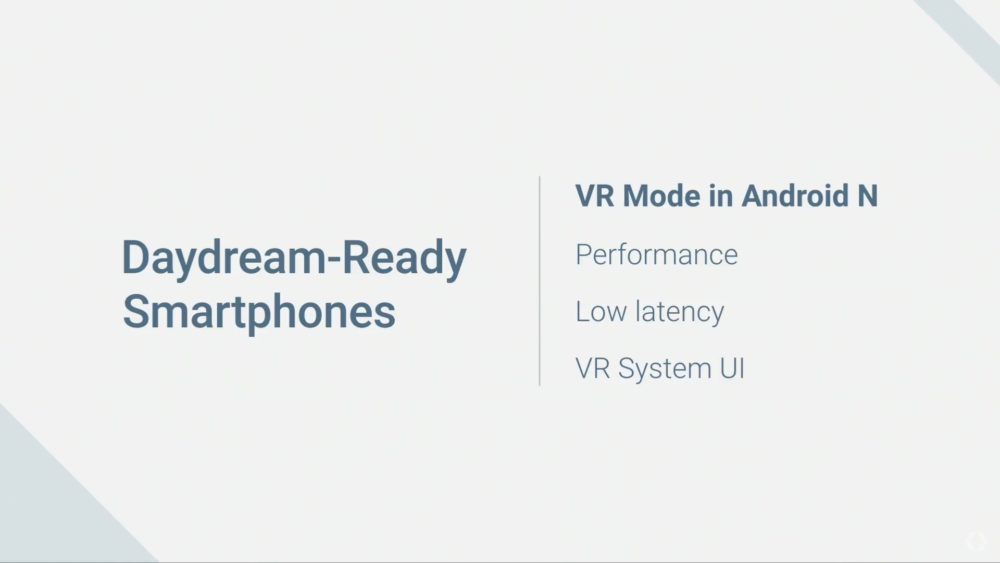عنوانی که گوگل برای گوشی هایی که کاملا برای استفاده از DayDream مناسب هستند در نظر گرفته، DayDream-Ready است. دستگاه های نسل بعد که دارای عملکرد بسیار بالایی هستند، از سنسور های متعدد و ضروری برای استفاده ی کامل از واقعیت مجازی DayDream برخوردارند، کمبودی از نظر کیفیت صفحه نمایش و زمان پاسخگویی ندارند و حداقل قدرت پردازشی و گرافیکی لازم برای استفاده ی بهینه از واقعیت مجازی DayDream را دارند، عنوان DayDream-Ready را از سوی گوگل دریافت خواهند کرد. یکی از سر پرست های بخش واقعیت مجازی گوگل در کنفرانس I/O 2016 در این مورد گفت: ما قصد داریم تا سطح کیفیتی بسیار بالایی را ارائه دهیم و برای رخ دادن این اتفاق نیاز است که تمامی اجزا با یکدیگر سازگاری داشته باشند. به همین دلیل در ادامه آقای Baver گفت که به احتمال زیاد هیچ کدام از گوشی های هوشمند فعلی ( ماه می) نمیتوانند عنوان DayDream-Ready را از سوی گوگل کسب کنند. این مسئله دو دلیل اصلی دارد که عبارتند از : کمبود سنسور های ضروری و دلیل دیگر پایداری پائین صفحه نمایش ها برای این کاربرد. همان طور که مشخص است هر دو دلیل کاملا به خود گوشی های هوشمند باز میگردد. سرپرست بخش صفحه نمایش پلتفرم DayDream در این رابطه گفته است که: ” هدست های واقعیت مجازی با استاندارد DayDream-Ready برای تجربه ی کاربری واقعیت مجازی همراه با کیفیت بالا طراحی شده اند. بر خلاف Cardboard های گوگل، این هدست ها برای مصارف کاربردی توسعه داده شده اند. کاربران میتوانند با کنترلر DayDream، از اپلیکیشن های واقعیت مجازی بهره مند شوند. “
