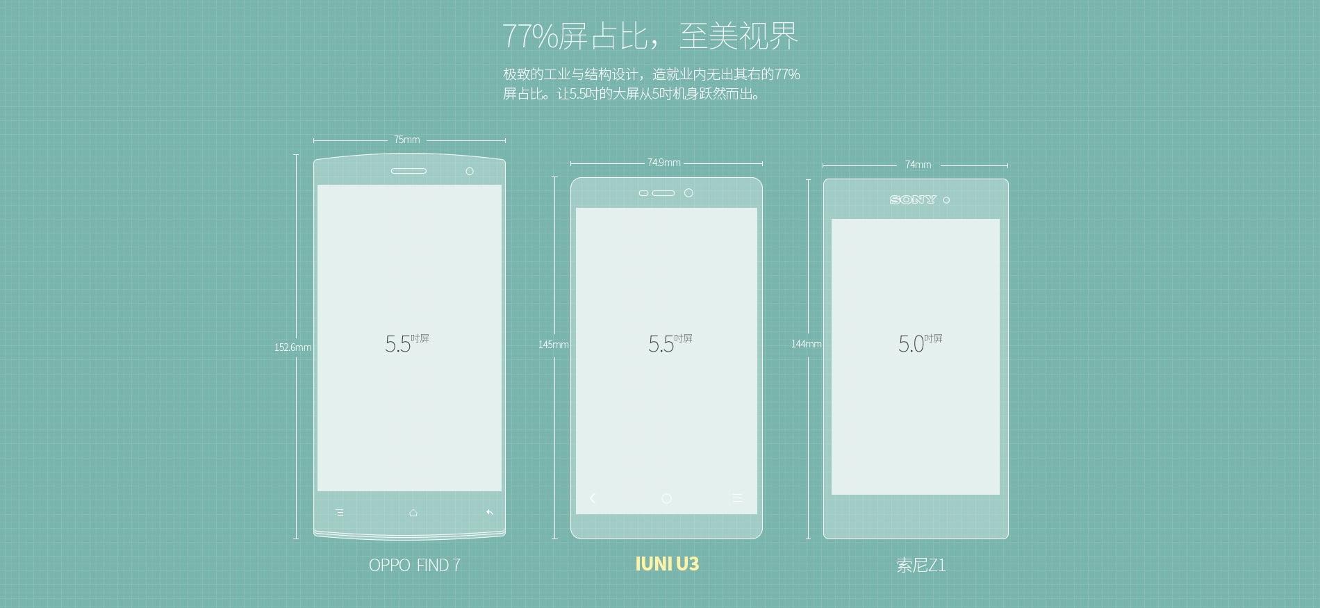 یادتان بود چند خبر در مورد اینکه باید منتظر موج گوشی هایی باشیم که هر روزه توسط برندهای جوان اما قدرتمنتد چینی وارد بازار می شوند. خوب بعد از وان پلاس وان، Oppo Find 7 و دیگر محصولات حال نوبت به این رسیده است که شرکت IUNI با گوشی U3 خود حسابی همه را دپرس کند! چرا؟ خوب بخوانید بعد می فهمید چرا ما این حرف را زدیم. این گوشی طراحی فوق العاده ای دارد و با این روش IUNI در یک نگاه نظر شما را به خود جلب می کند. صفحه نمایش این گوشی در حدود 77 درصد سطح جلویی گوشی را در بر گرفته است که این میزان بیشتر از رقیب دیگر خود یعنی Oppo Find 7 است.