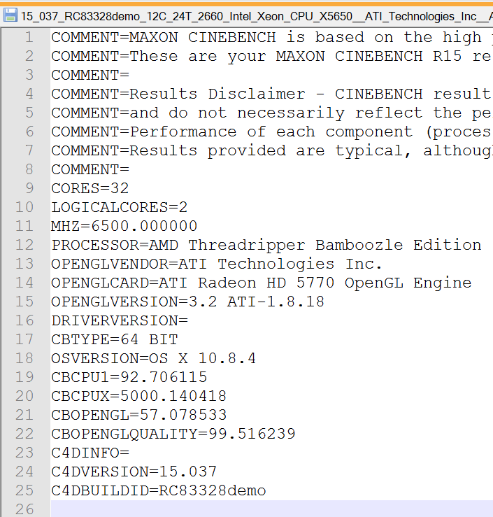 این cinebench خیلی بی در و پیکره. نباید به صورت متنی ذخیره کنه باید کدگذاری کنه رو فایلاش.