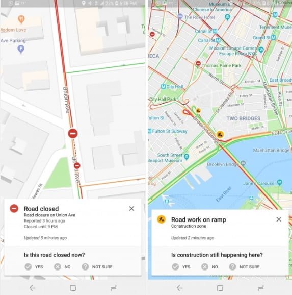قابلیت جدید گوگل مپس اطلاع از وضعیت جاده است که در حال حاضر برای تعداد محدودی از کاربران در دسترس است. گوگل حالا اگر جاده ای در دست تعمیر باشد به کاربرانش گزارش میدهد، به زودی اطلاع رسانی در خصوص تصادفات نیز به آن اضافه خواهد شد. اپلیکیشن گوگل مپس با اطلاعات کاربران خود وضعیت نقشه را به روز می کند و از آنها میپرسد که آیا جاده هنوز در دست تعمیر است، کاربران با “بله”، “خیر” و “مطمئن نیستم” می توانند وضعیت نقشه را به روز کنند. البته همانطور که پیش تر عنوان شد این ویژگی حالا تنها برای کاربران محدودی عرضه شده، اما مطمئنا پس از آزمایش در طیف وسیع تر مورد استفاده قرار خواهد گرفت.