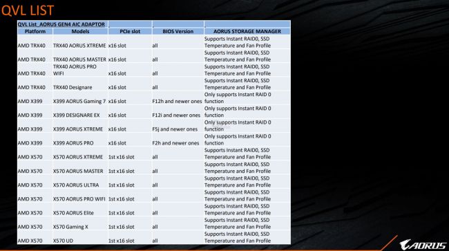 این اطلاعات بر اساس لیست سازگاری AORUS Gen4 AIC Adapter برای مادربردهای زیر به دست آمده است: