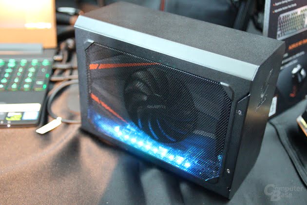 کمپانی گیگابایت در نمایشگاه کامپیوتکس 2017 دست پر ظاهر شد؛ محصولات آن با دو نام تجاری Gigabyte و Aorus بسیار مورد توجه بازدید کنندگان قرار گرفتند. یکی از جدید ترین دستاوردهای گیگابایت، آمپلی فایر گرافیکی بود که با نام Aorus راهی بازار می گردد. این محصول به مانند دیگر باکس های گرافیکی از اینترفیس پر سرعت Thunderbolt 3 استفاده می کند که پهنای باند آن به 40 گیگابیت در ثانیه می رسد. در این باکس یک کارت گرافیک Aorus GTX 1070 Gaming نصب شده است و می تواند از دقت 4K و QHD نیز پشتیبانی نماید. کاربران به سادگی می توانند با اتصال این باکس به نوت بوک یا الترابوک های خود، از بازی های روز با دقت بالا لذت ببرند.