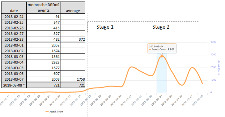 مبنی بر گزارشات منتشر شده، اخیراً حملات بزرگی صورت گرفته است که این حملات DDos  از سرور Memcached نشات گرفته است. کمپانی چینی Qihoo 360 که مسئولیت نظارت بر DDos در وب جهانی را به عهده دارد، اخیرا حملات DDos مبتنی بر سرور Memcached را کشف کرده است و در وبلاگ خود آمار قربانیان و منابع حملات را اعلام و منتشر کرده است.