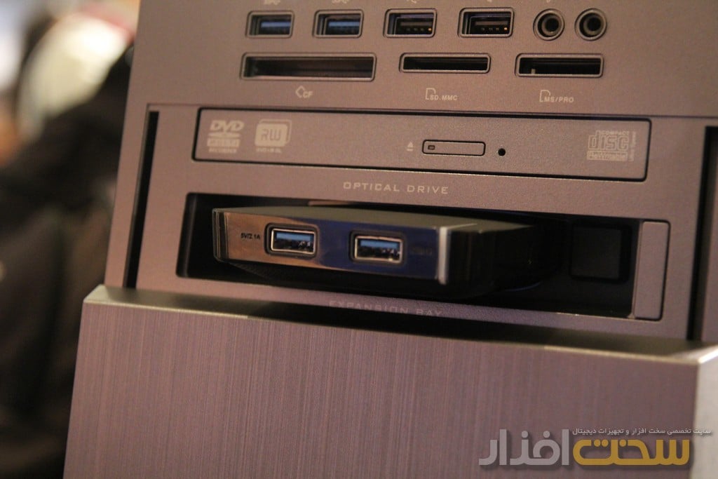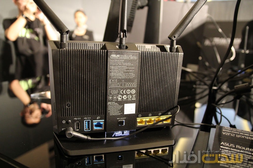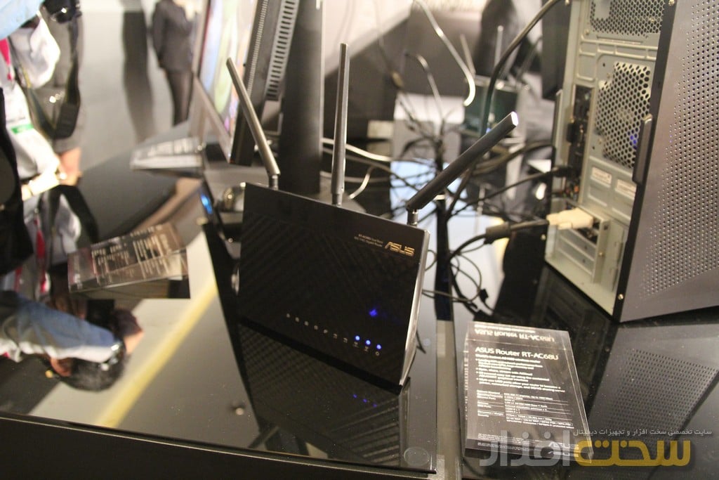 در روی میز دیگری که در محوطه خارجی نشست خبری قرار داشت به ترتیب روتر جدید RT-AC68U، مانیتور PA279Q و کیس G10 دیده می شدند. از ویژگی های بارز AC68U به امکان پوشش دهی بیشتر، سرعت انتقال بالاتر و همچنین تعبیه پورت های USB نسخه دو و سه اشاره کرد که امکان اتصال وسایل مختلف را فراهم می کند. کیس G10 هم که در این بخش وجود داشت دارای UPS و باتری همراه بود.