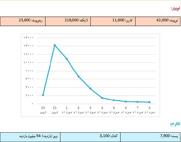 کاربران تلگرام نیز ۷ هزار و ۹۰۰ پست در این باره منتشر کردند. همچنین ۳ هزار و ۱۰۰ کانال تلگرامی به این موضوع پرداختند که ۵۴ میلیون بازدید را شامل شد.