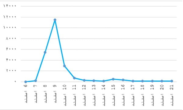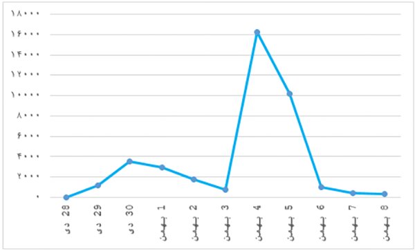 خبر غرق شدن نفتکش ایرانی سانچی بیش از ۳۲ هزار و ۸۰۰ توئیت در این موضوع منتشر شد. بیش از ۱۳ هزار و ۸۰۰ کاربر در این موضوع مشارکت داشته و با انتشار توئیت و ریتوئیت بیش از ۱۸۵ هزار لایک از سایر کاربران دریافت کردند. تعداد ریتوئیتها نیز بیش از ۲۱ هزار بوده است. توییتهای پیرامون این موضوع با انتشار خبر غرق شدن کشتی روند افزایشی به خود گرفته و در ساعت ۱۲ تا ۱ ظهر به حدود ۶ هزار توئیت رسیده است.