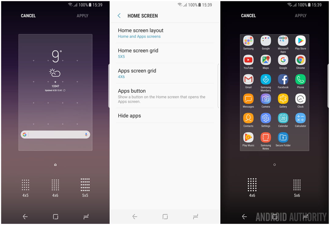در گلکسی اس 8 دست شما برای شخصی سازی صفحه نمایش گوشی خود کاملا باز است و خوشبختانه این کار بدون دردسر خاصی امکان پذیر است. در صورتی که میخواهید اینفینیت دیسپلی گلکسی اس 8 را بیش از حالت استاندارد مجلل کنید، میتوانید محتویات داخل آن را کمی بزرگ تر کنید. برای این کار به منوی تنظیمات، قسمت نمایشگر و اسکرین زوم بروید و فونت ها و آیکون ها را کمی بزرگ تر کنید. برای دیدن تغییرات حتما دکمه ی Apply را بزنید و سپس به صفحه ی هوم برگردید و تغییرات را مشاهده کنید. همچنین شما میتوانید لایه های آیکون های اپلیکیشن ها را در صفحه ی هوم و کشوی برنامه ها تغییر دهید.