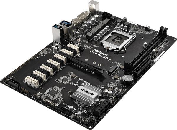 تب و تاب تجارت ماینینگ به تولید کنندگان بزرگ سخت افزار نیز سرایت کرده است؛ ازراک، به عنوان یکی از برترین برندهای شناخته شده در حوزه تولید مادربرد، به تازگی مادربرد ASRock H110 Pro BTC+ را به منظور استخراج های تخصصی ماینینگ معرفی کرد. این مادربرد با شکست رکوردی که در دستان BIOSTAR بود، از 13 کارت گرافیک پشتیبانی می کند. این محصول از 1 اسلات PCIe x16 و 12 اسلات توسعه PCIe 2.0 x1 استفاده کرده و در مجموع می تواند تا 13 کارت گرافیک از هر دو برند AMD و NVIDIA را در خود جای دهد. مادربرد ASRock H110 Pro BTC+ علاوه بر یک رابط اضافی تغذیه Molex، دارای 2 رابط DIMM است که از حداکثر 32 گیگابایت رم DDR4 با فرکانس حداکثر 2400 مگاهرتز پذیرایی می کند.