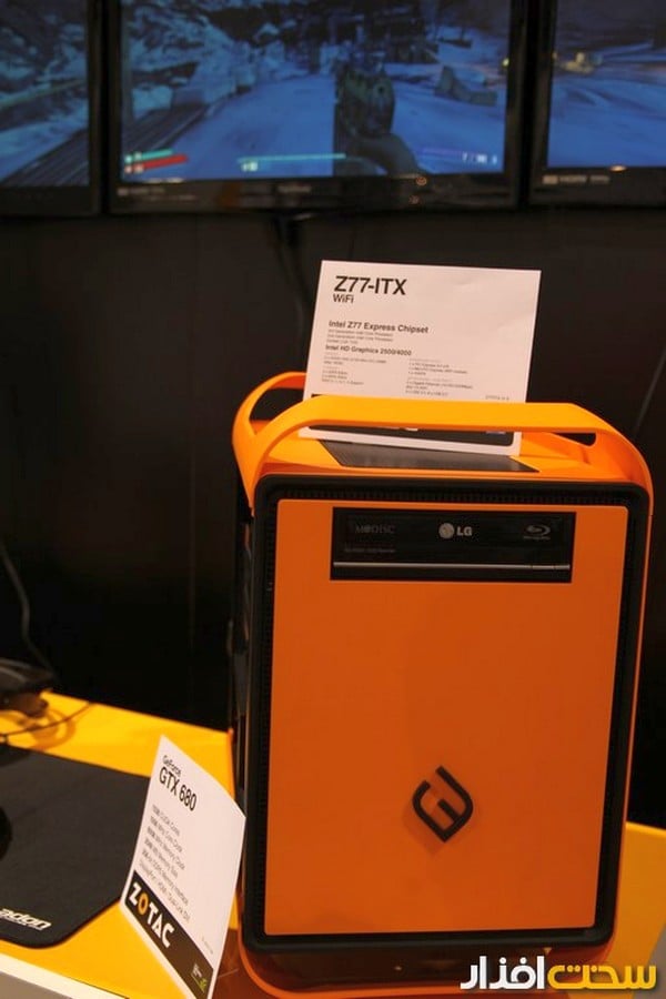 یک سیستم جمع و جور و نسبتاً قابل حمل در این غرفه مجموعه ای کامل برای اجرای جدید ترین بازی های روز را ارائه میداد. این سیستم شامل یک مادربورد mini ITX مجهز به چیپست Z77 با اتصال wi-Fi است که یک کارت گرافیک GTX 680 روی آن نصب شده و بدون مشکلی بازی های روز را اجرا میکند.