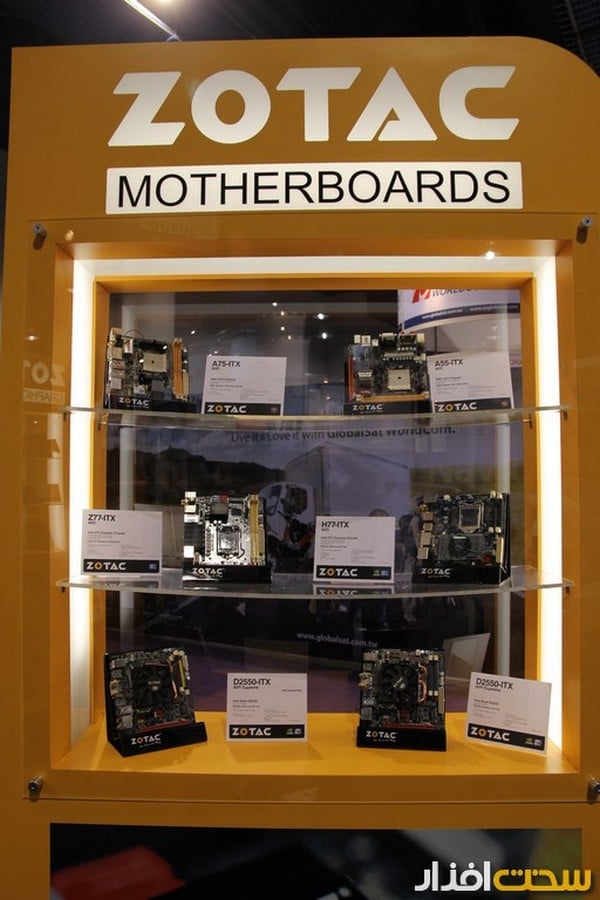 ویترین های مرتبط با کارت های گرافیک و مادربورد های جدید mini ITX زوتاک نیز در گوشه و کنار غرفه قرار داشتند و آنچه که کاربران امسال با آن روبرو خواهند شد را به نمایش گذاشتند.