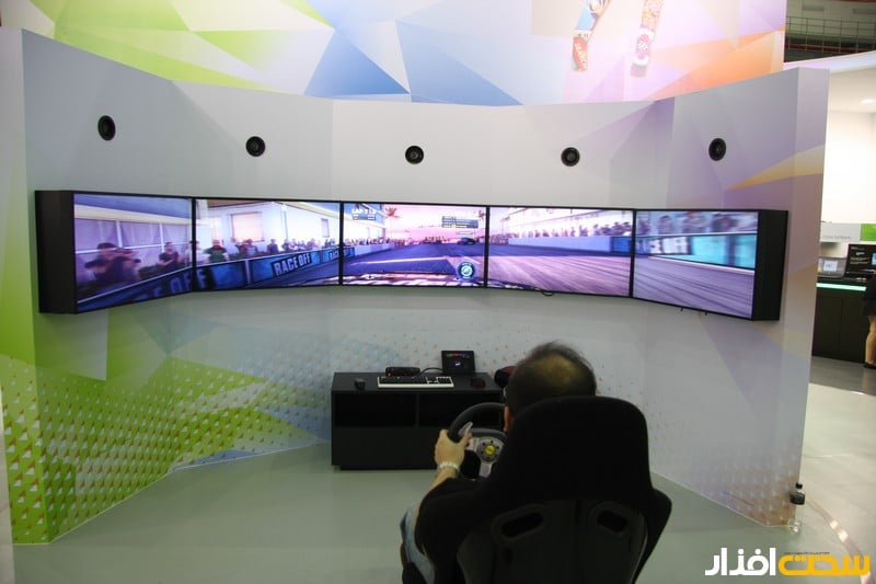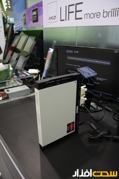 در بخش Radeon Graphics یک سیستم مجهز به سه مانیتور دیده می شد (Eyefinity) اما برای تکمیل این موضوع AMD درست در وسط غرفه یک سیستم Eyefinity با پنج مانیتور تعبیه کرده بود.