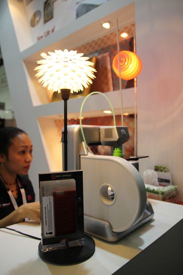 دستگاه سازنده سه بعدی از ماده ای خاص استفاده کرده و میتواند طرح هایی سه بعدی را تولید نماید. ماده مورد استفاده در این دستگاه با استفاده از فناوری نانو ساخته شده و تقریباً میتواند هر طرحی را ایجاد نماید. چراغ قرار گرفته در کنار این دستگاه نیز با استفاده از دستگاه هی مشابه ساخته شده است. چند نمونه دیگر از چراغ های ساخته شده با استفاده از این فناوری نیز به ما نشان داده شد که طراحی زیبایی داشته و نور ساطع شده از آن ظاهر زیبایی به محیط میدهد. با این حال قیمت بالای آن ممکن است کمی شما را دچار شک و تردید کند.